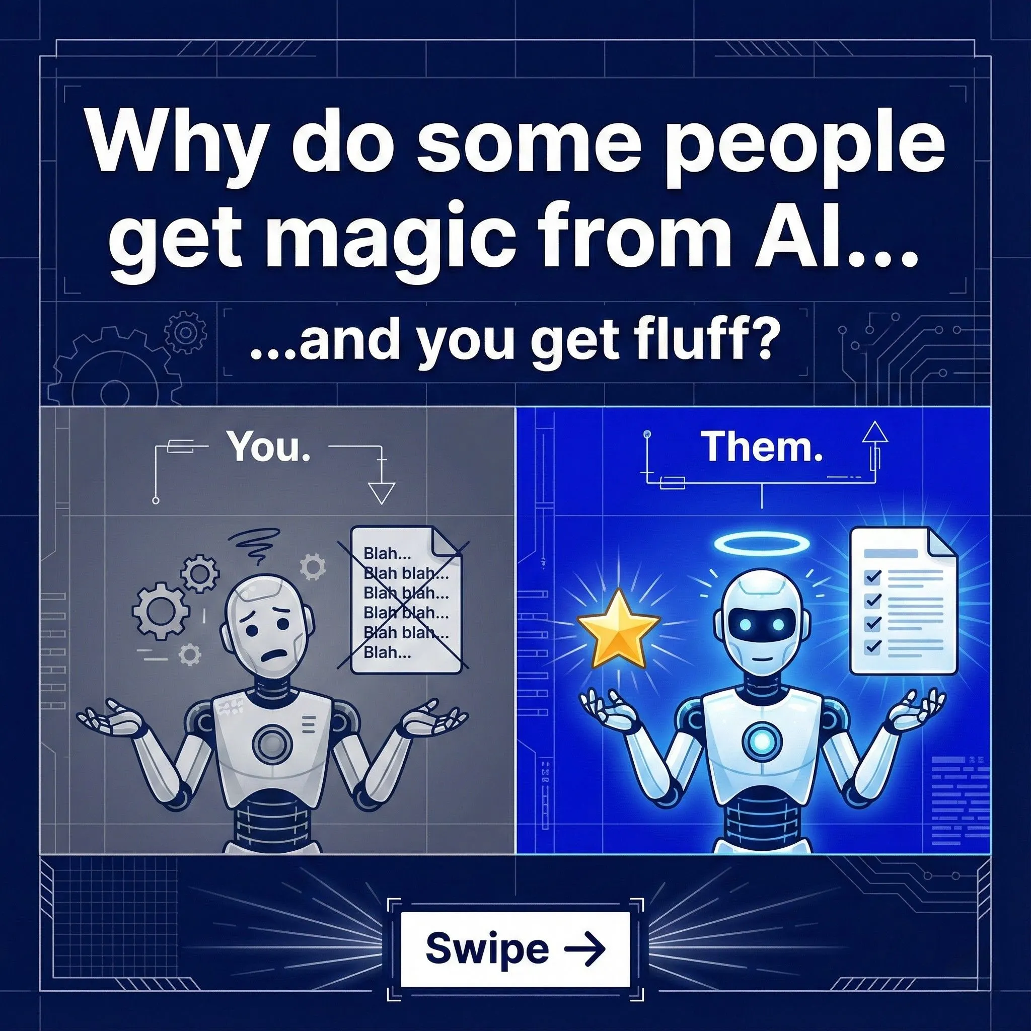 The problem isn't the AI. It's the prompt. We developed the 7-part "High-Performance Prompt Framework" to solve this exact problem for ambitious entrepreneurs like you. This simple 1-page guide teaches you how to ask for what you want, moving you from a frustrated user to a confident operator.