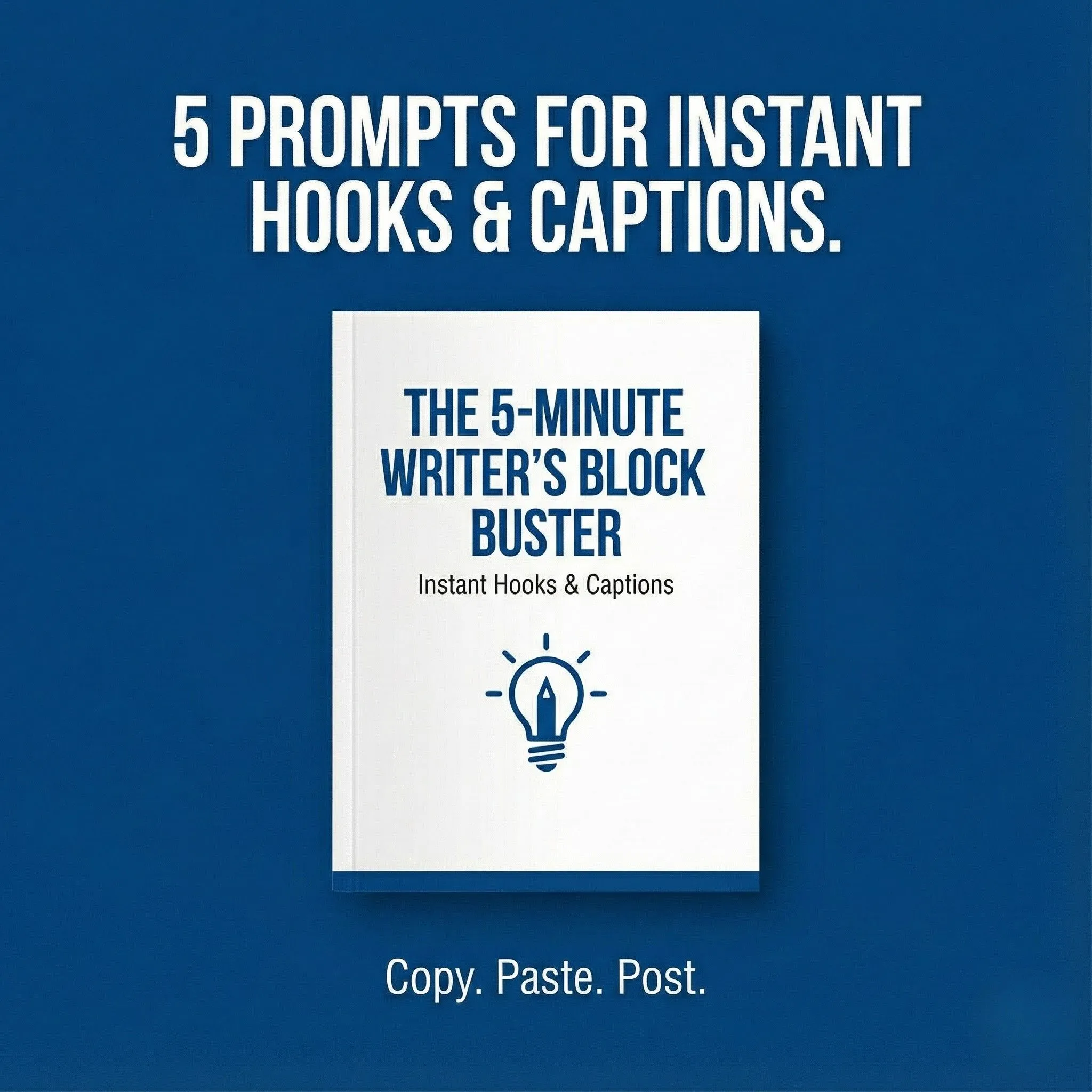 This 1-page swipe file contains 5 expert-engineered AI prompts designed to instantly solve your most common creative bottleneck: the "blank page." Stop wasting time on "trial-and-error" and finally beat writer's block for good. This is the instant gratification tool you need to keep your content momentum going.