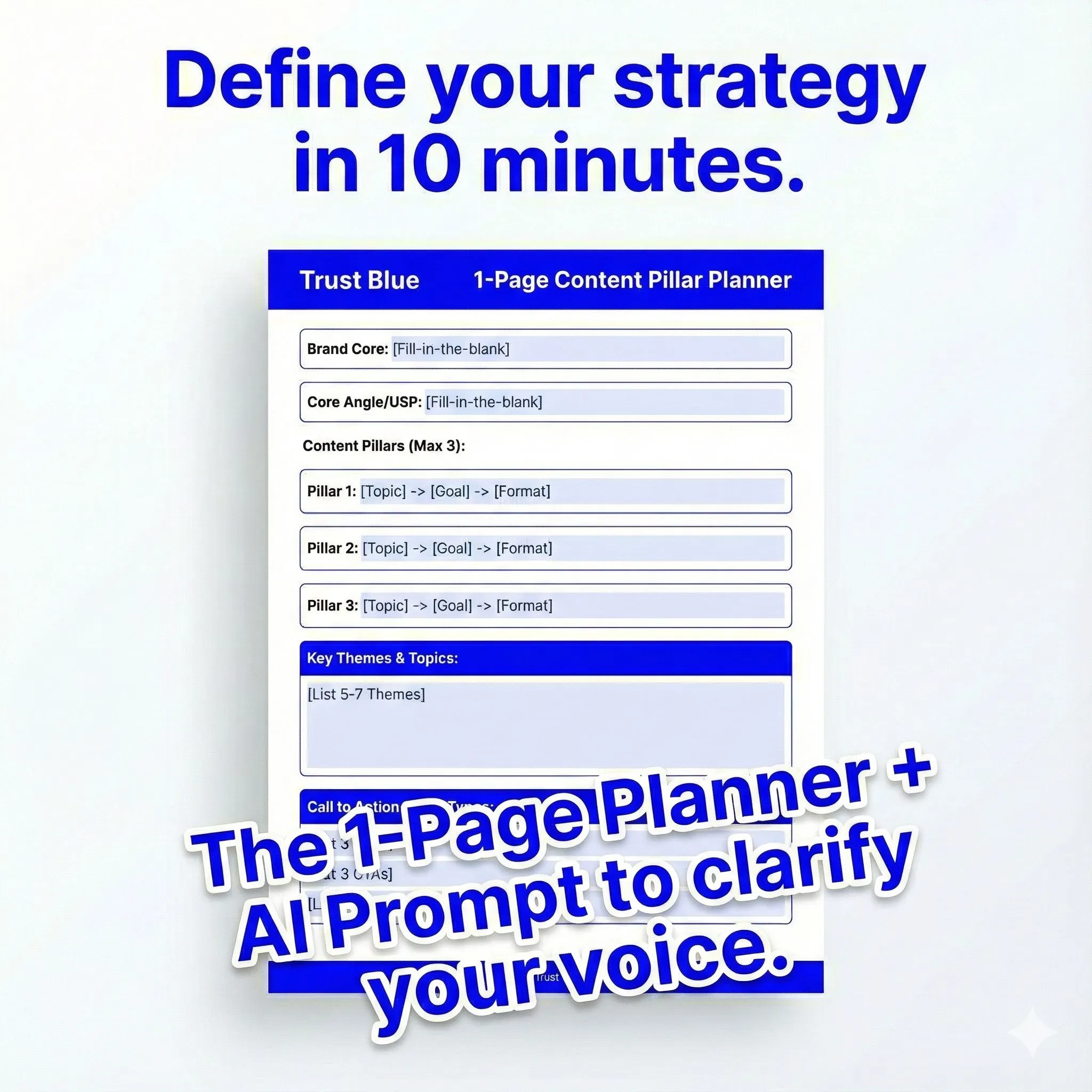 This 1-page planner solves that. It's a simple, fill-in-the-blanks template combined with a powerful AI prompt. In 15 minutes, you'll move from short-term tactics (a 1-week plan) to a long-term strategy, giving you a clear direction for all your content.