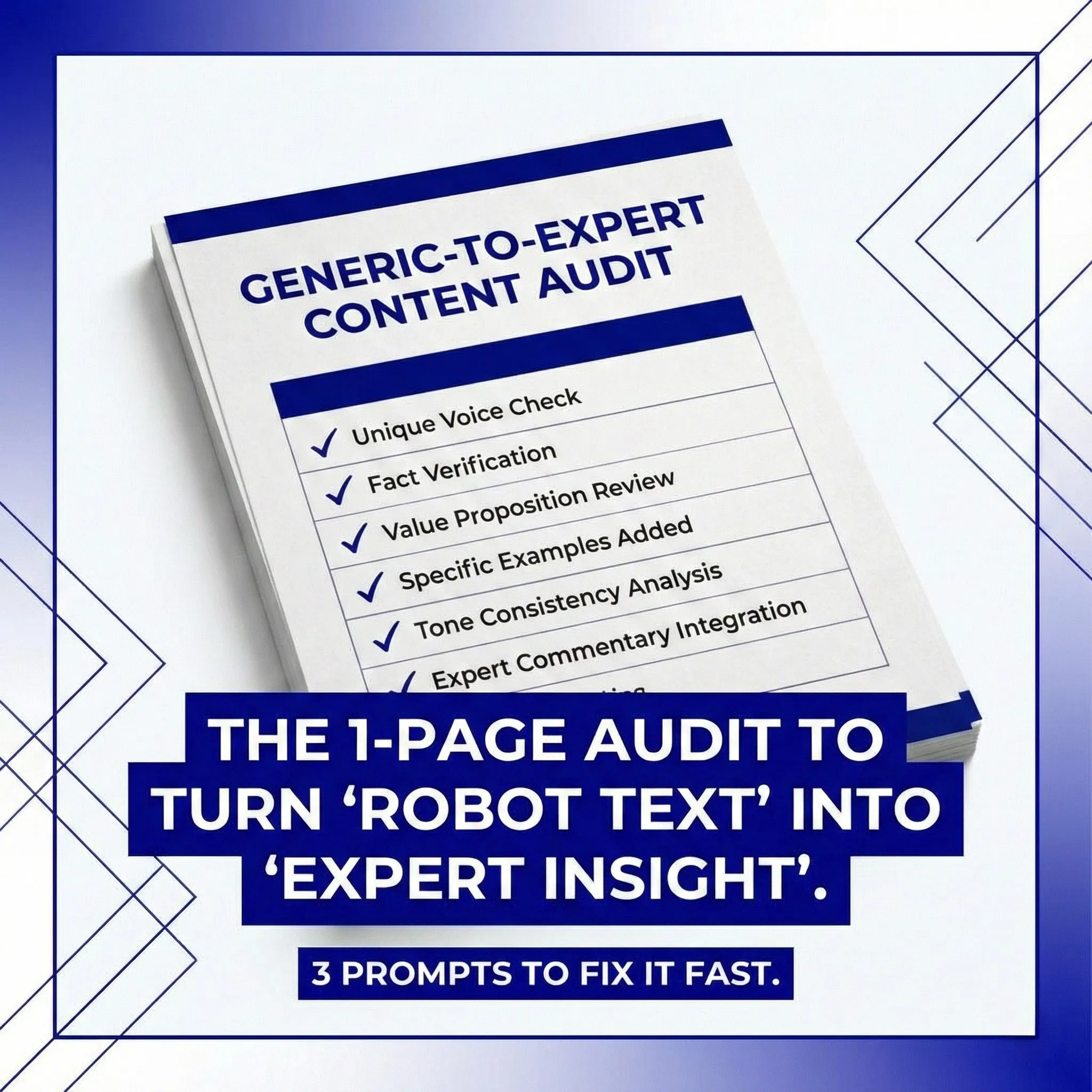 Stop sounding like a robot. Get the 1-page checklist to diagnose "generic" AI content and 3 expert prompts to instantly build authority in your niche.